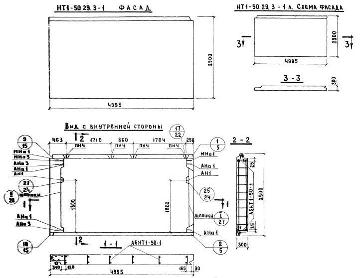 НТ1-50.29.3-1л Наружная стеновая панель торцевая по Серии 1.132-1.